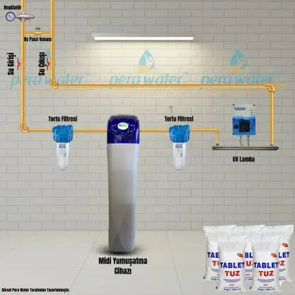 Pemax Water Solutions Beta Slim Midi Kabinet Kireç Önleyici Su Yumuşatma Cihazı Ve Merkezi İçme Suyu Arıtma Sistemi Beyaz Renkli
