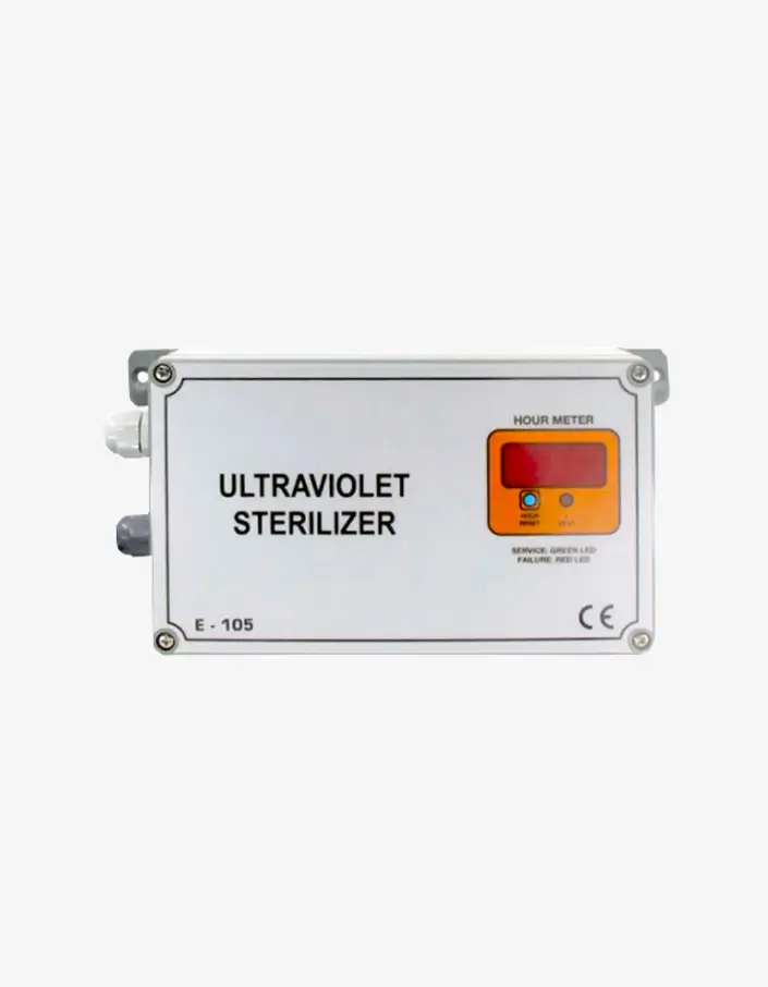 E 505 Plus UV panosu, su arıtma sistemlerinde kullanılan UV lambalarının kontrolünü sağlamak için özel olarak tasarlanmış bir üründür. Bu panonun özellikleri arasında, dijital göstergeli, sesli arıza bildirimi, alarm röle çıkışı, lamba ömrü dolduğunda uyarı verme, arıza göstergesi, elektronik çalışma saati ve sesli uyarı sistemi bulunur.